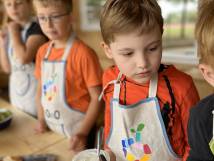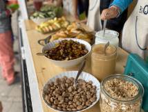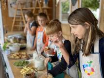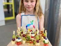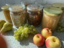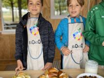 Verpackungen sind tabu, denn das Thema Klimaschutz wird an unserer Schule ganz konkret mit Leben gefüllt. Alles, was die SchülerInnen sich auswählen, kostet 50 Cent. Im Angebot sind vollwertige Produkte, die vom BioKio-Team am Tag vorher selbst zubereitet werden: Apfelmus und Marmelade aus frisch geernteten Früchten, leckeres Brot, zuckerreduzierte Muffins und Kuchen, selbst gemachter Joghurt und Frischkäse, Obstspieße und verschiedene Dips mit Rohkost und Laugengebäck in allen Variationen - alles fleischlos, mit überwiegend regionalen und saisonalen Zutaten, wenn möglich in Bio-Qualität. Neben dem Klimaschutz geht es vor allem darum, die Kinder an gesunde und trotzdem leckere Lebensmittel heranzuführen und ihre Freude am Kochen und Backen zu wecken.