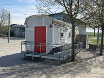 als Kiosk umfunktionierten Bauwagen, der mitten auf unserem Schulhof steht. Das